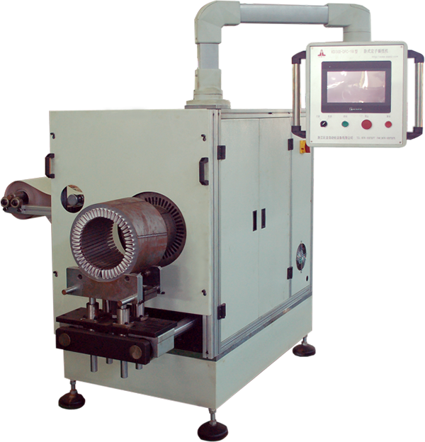 本機適用于中大型感應(yīng)電機定子槽絕緣紙的自動插入。采用進口PLC程控,彩色觸摸屏控制,可設(shè)定緩升起動時間、減速時間。各動作均用機械聯(lián)動設(shè)計及間隙送紙機構(gòu),有兩端自動翻邊,自動定長切斷,自動成型,自動插入,操作簡單,更換模具方便。